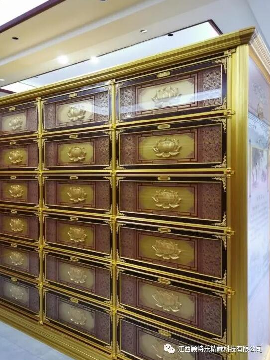 江西顧特樂精藏科技有限公司位于江西省樟樹市,創立于2009年,擁有注冊資金5099萬元,是一家集研發、制造、銷售、服務為一體的生產廠家。是國家“高新技術企業”、“國家知識產權標桿企業”“兩化融合貫標企業”,“顧特樂”品牌被評為“江西省名牌產品”,中國殯協理事會員,江西省殯協副會長單位。主營:骨灰存放架、牌位架、佛龕架及相關配套產品。平均每年獲得上十份專利證書。自有“云端凈土”運營系統,為廣大殯儀場所,提供專屬“互聯網+殯葬”服務。
