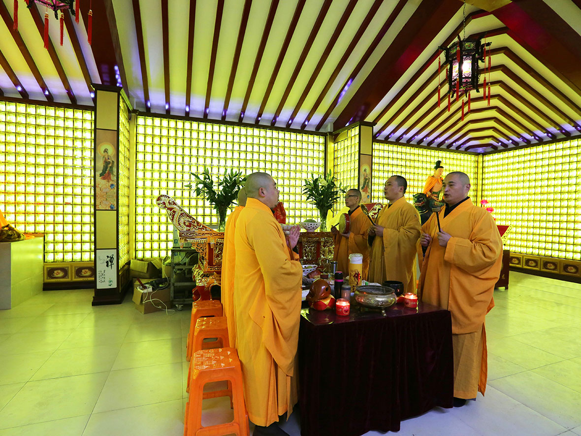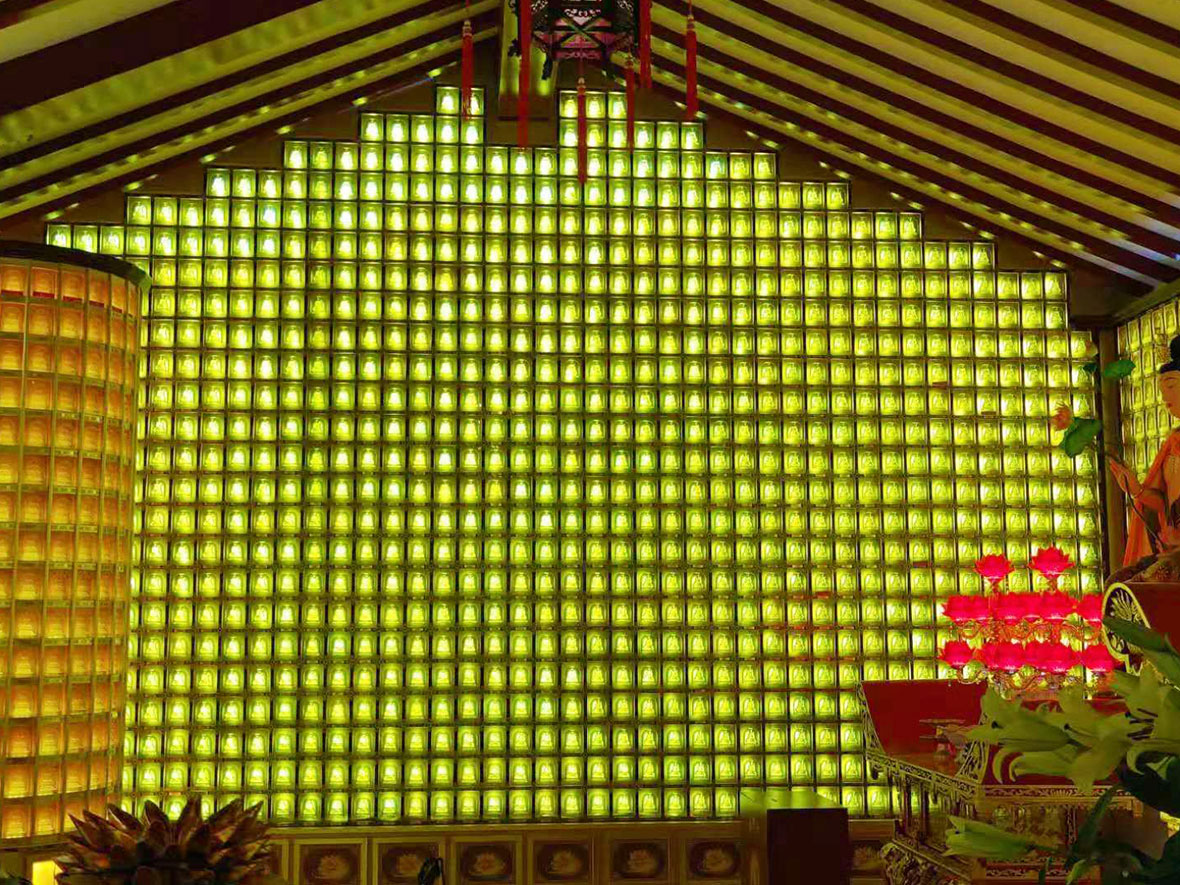 近代的廟宇中,光明燈因信徒眾多,以往使用蠟燭或油燈的方式,其大量燃煙造成許多困擾,因此設(shè)計(jì)有現(xiàn)代的塔型佛柱和萬(wàn)佛墻,在臺(tái)灣許多廟宇皆可看到,塔型的光明燈柱,是每一層中有小隔間,通過(guò)冷光LED燈珠,透過(guò)外面的琉璃佛像,上面寫(xiě)上供奉人的姓名(經(jīng)常以紅色筆寫(xiě)成)。